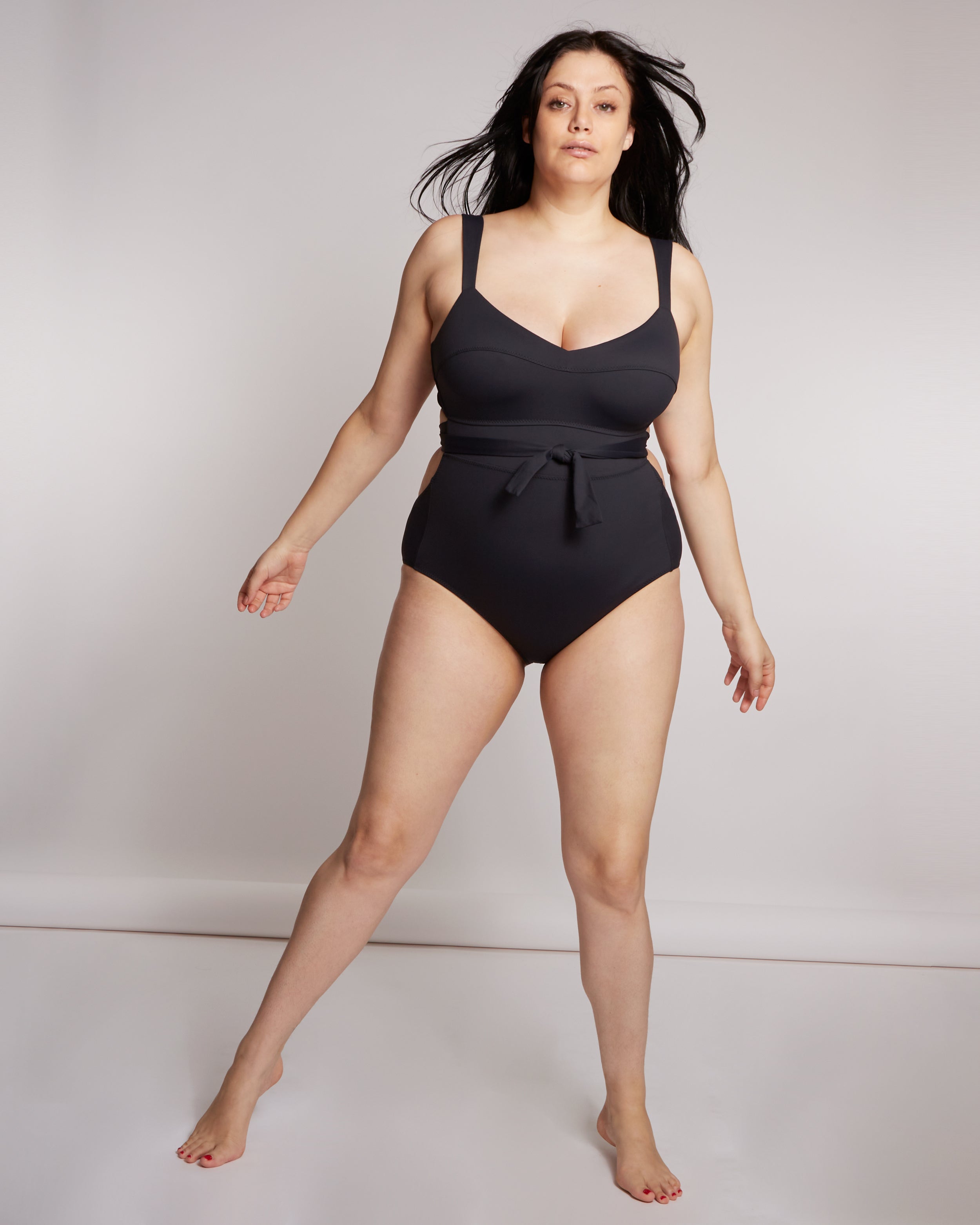 FIT FOR A QUEEN - A SUPPORTIVE MESH-LINED TOP + WRAP AROUND SASH ON THIS MAILLOT HAVE DD-DDD CUP GALS FEELING POSITIVELY ROYAL.