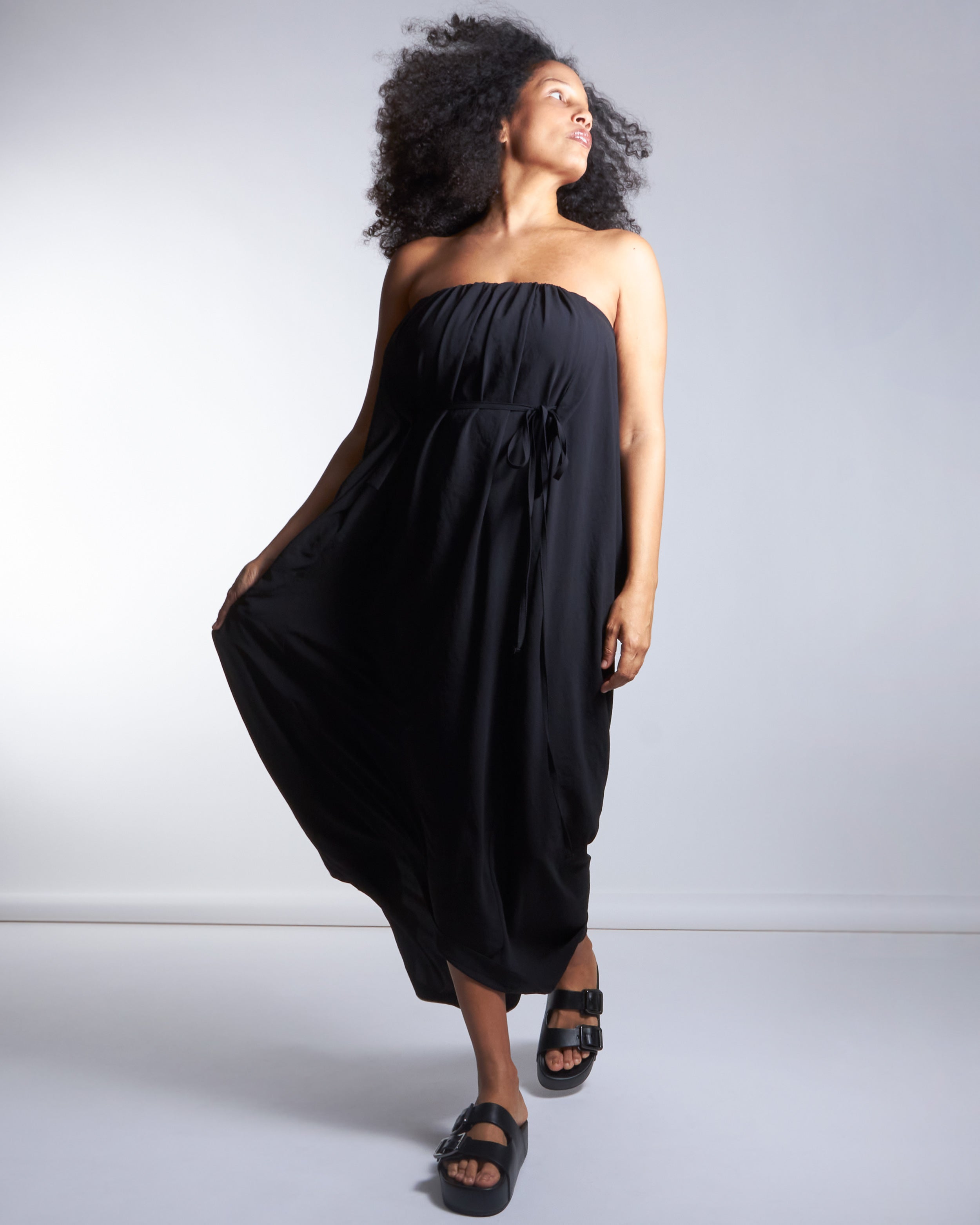 PLEATS. POCKETS. TIE IT IN THE FRONT, TIE IT IN THE BACK, OR TIE IT ALL TOGETHER WITH AN MM BELT. FOR DREAMING AND DELIGHTING, DAY TO NIGHT.
